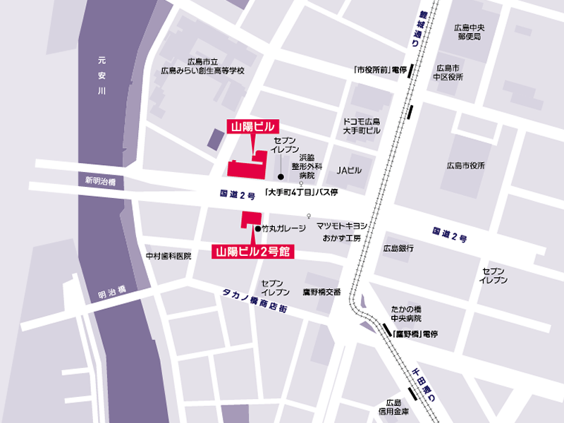山陽ビルのテナントビルは、広島市の中心地に位置し利便性の高いロケーションです。